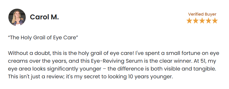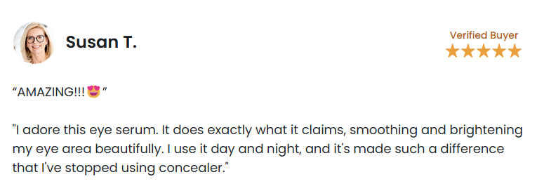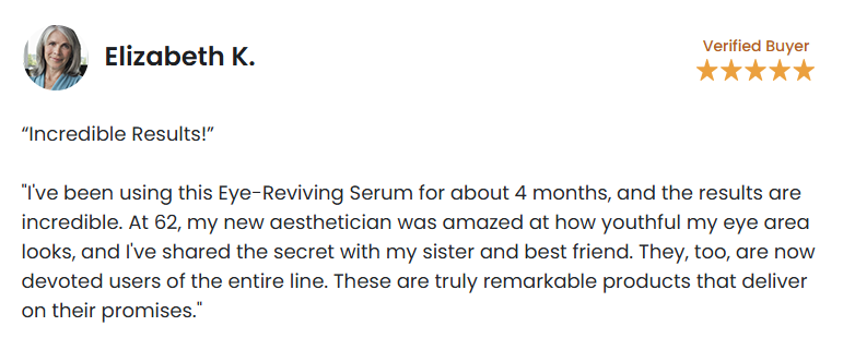 Instead of paralyzing muscles or plumping skin with fillers, this formula uses a patented peptide complex to rebuild collagen, smooth crepe-like texture, and strengthen your skin’s “under-eye foundation” to give you an Eye-Reviving Solution.